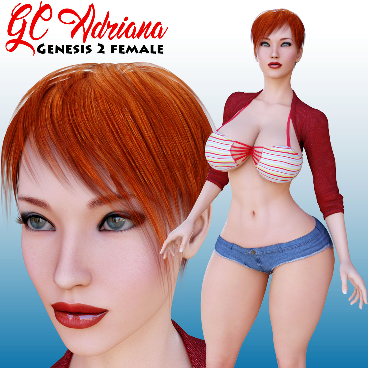 GC Adriana is a Character preset for Genesis 2 Female. This product was create and sculpted in zbrush to make a Sensual character Model she have a nice Curve Body.