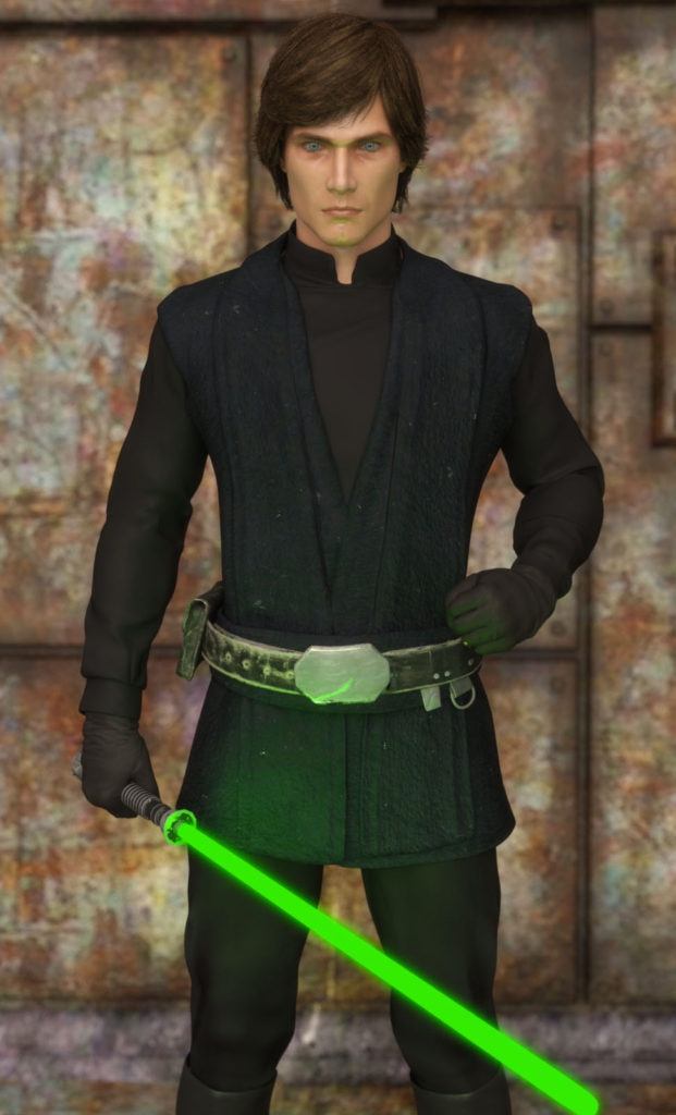 Luke Skywalker outfit for G3M including hair and lightsaber, the material is for iray render.