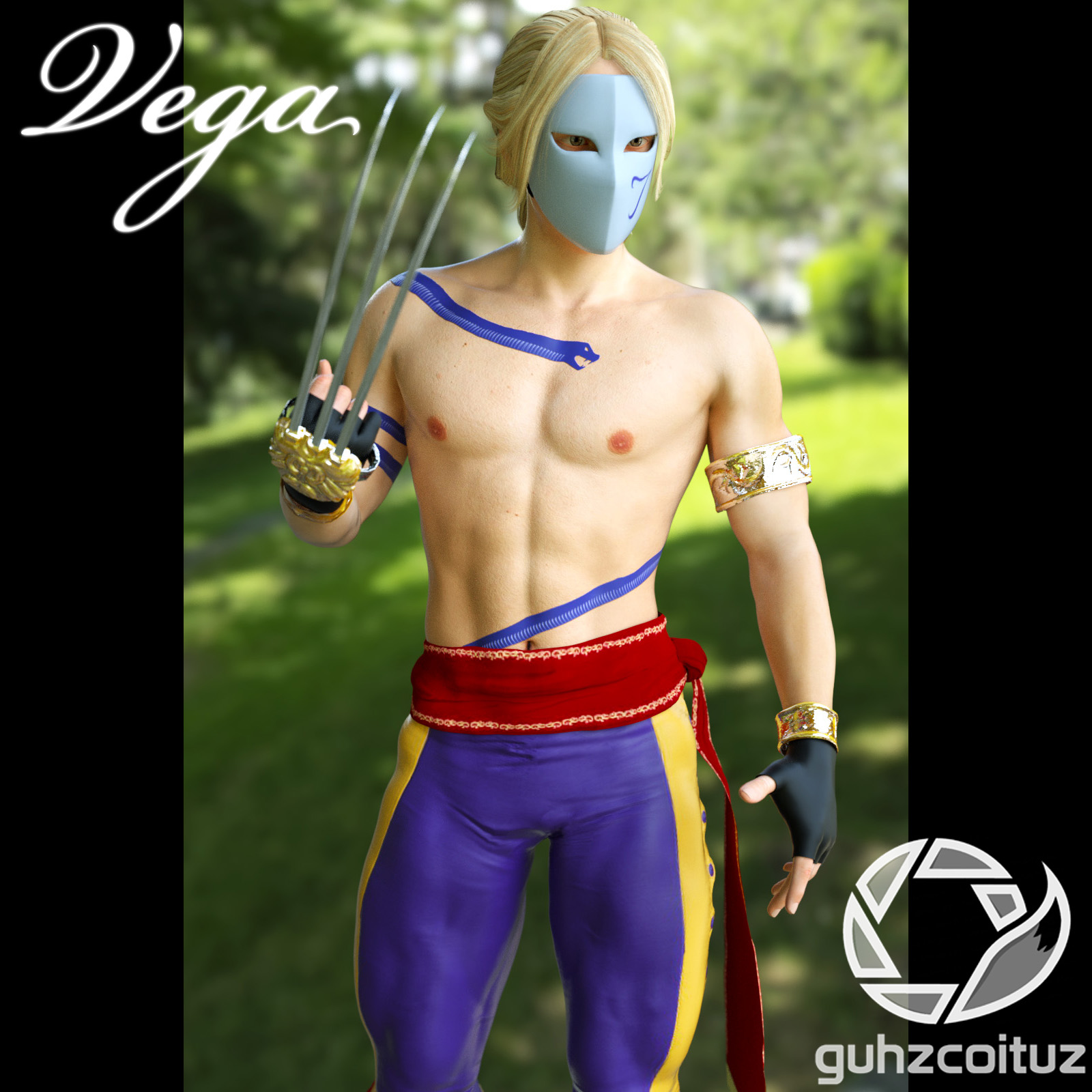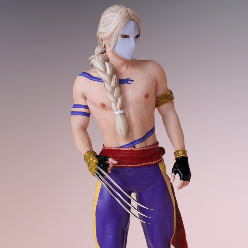 Vega costume for genesis 3 male is outfit for 3d cosplay with all the details include Claws,Hair,Props, and Skin Texture
